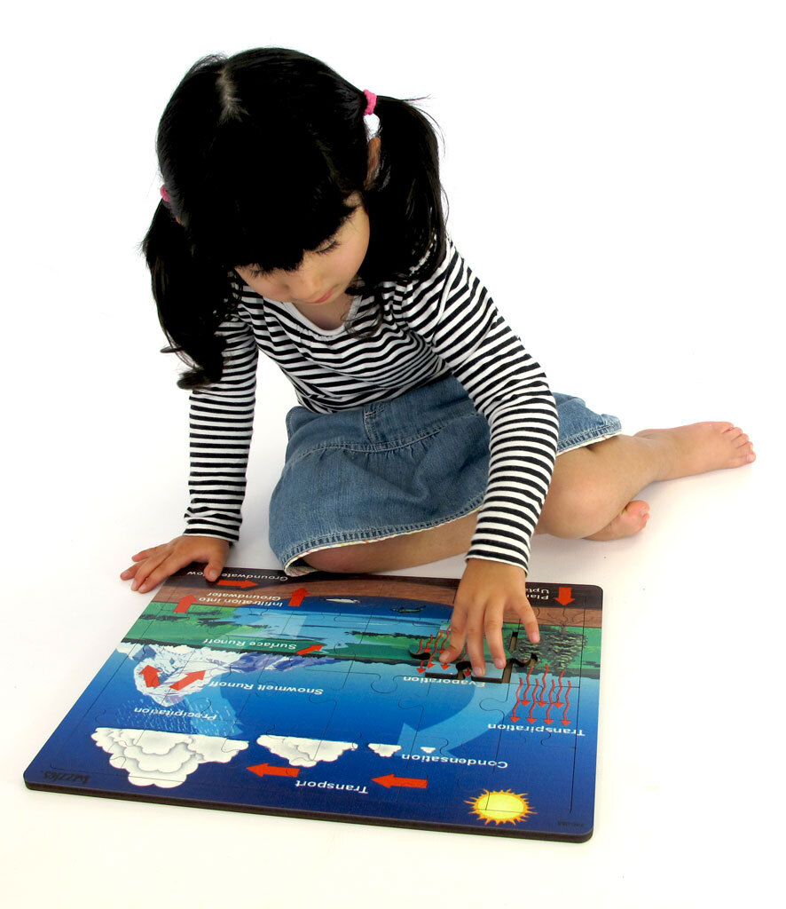 This puzzle will have the children thinking about the water cycle in a whole new way. Showing a detailed view with labels, the water cycle is clearly explained in this 24 piece puzzle. Water Cycle is a Flat Tray wooden puzzle.