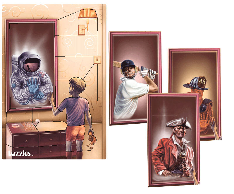 A Raised shape cut puzzle with extra pieces to replace the who you want to be when you grow up section. This is a fun puzzle which sparks lots of conversations and challengers the imagination of the young puzzler.