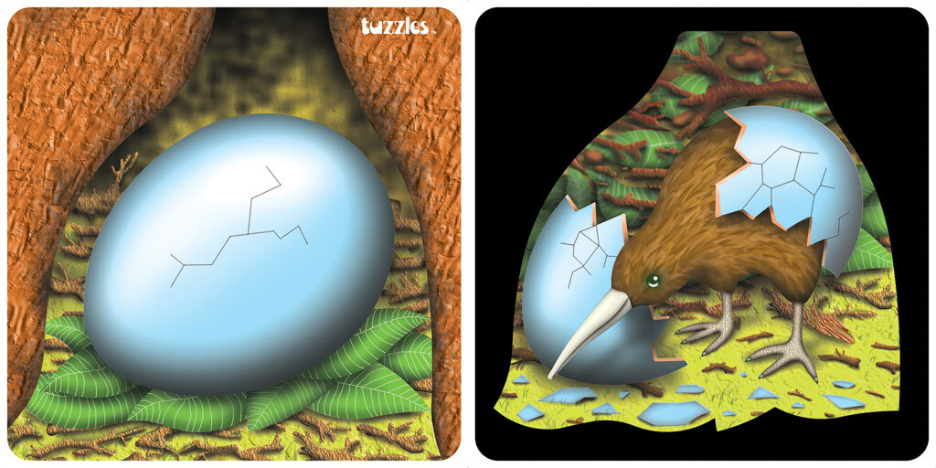 The Kiwi is an interesting bird and has been chosen to show that birds also hatch from an egg. This 2-layer puzzle is part of our discovery puzzles themed Who Comes from and Egg. Children will enjoy discovering the Kiwi under the egg .