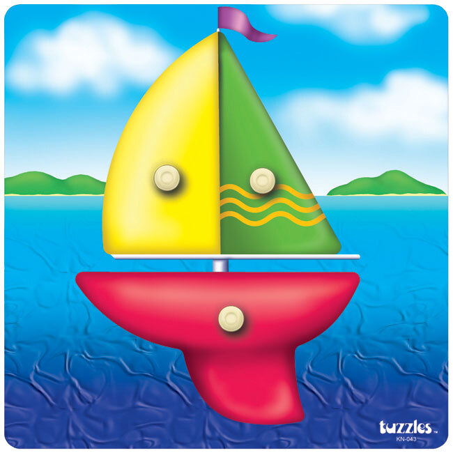 A Whole Picture Peg puzzle featuring a Yacht. Featuring easy grip pegs, this three piece puzzle is a perfect next step to single piece pegs. The image is bright and the three pieces have a very distinct shape which makes it easier for the child to achieve a successful task.