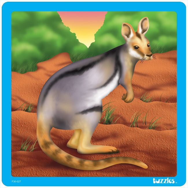 The Yellow Footed Rock Wallaby is an interesting puzzle cut into many different shapes and sizes. This bright colourful and interesting animal is a Flat Tray Wooden puzzle. Remember - For the Long Term use of your Tuzzles Puzzle, Please learn to gently Tip and Turn. This means, before starting your puzzle, to remove the pieces gentle, tip the puzzle over and let the pieces fall onto the table or the floor, if that is where you are doing your puzzle.